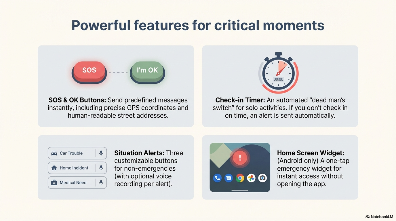 Android only: Add a one-tap emergency widget to your home screen for instant access without opening the app. Instructions for using it with a physical button or gesture are also provided in the app.