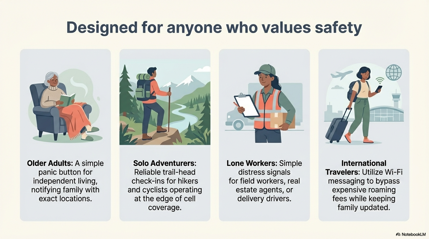 Hikers or cyclists who want a reliable way to send their location to family at the start/end of a trail or in case of emergency.